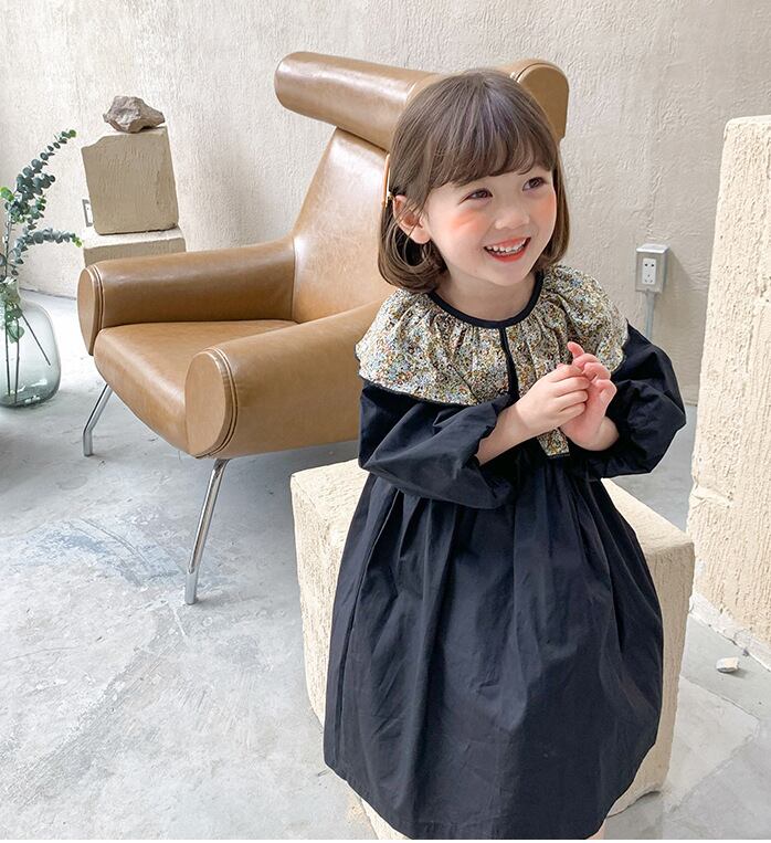 キッズ ワンピース 子供服 キッズファッション 3-8歳対応 長袖 フリル襟 女の子 韓国ファッション