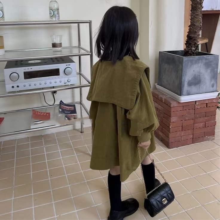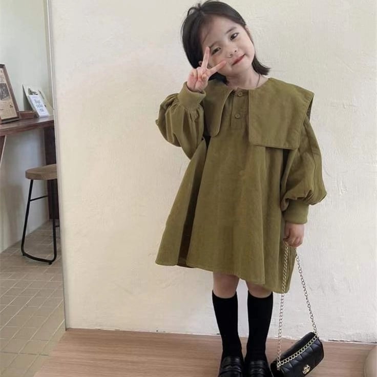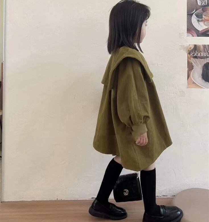女の子 無地 ワンピース コーデュロイ 子供服 厚手 長袖ワンピース