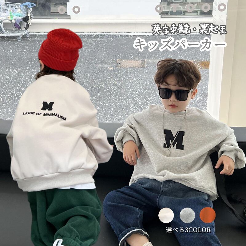 子供服 英字刺繍 裏起毛 パーカー 厚手 トップス